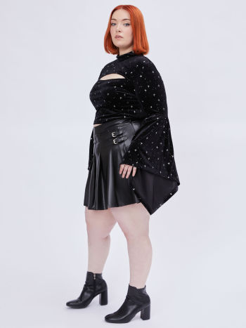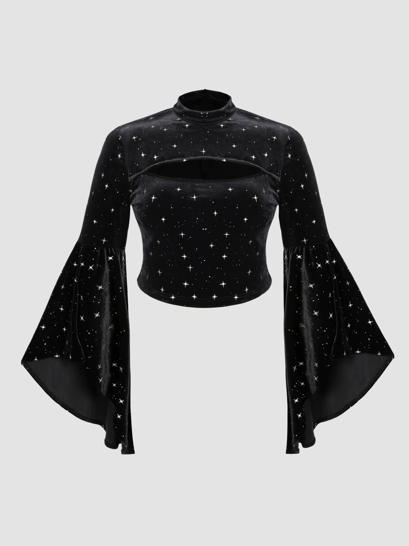 Velvet Star Pattern Bell Crop Sleeve Top Curve & Plus
